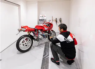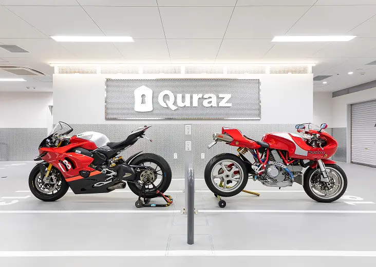 キュラーズのバイクパーキングは一から設計し、全スペース幅900mm以上を確保。広々とした空間で雨風・日よけはもちろん、空調も完備しているので大切なバイクを清潔に保管できます。